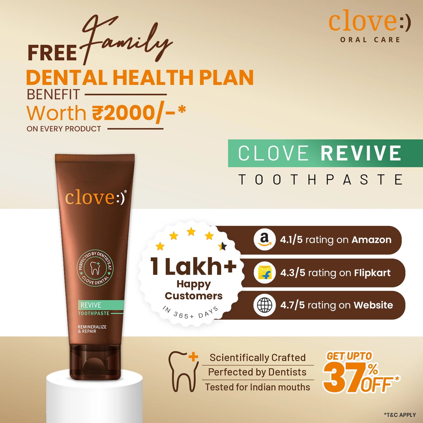 Regular price ₹ 269.10 (31% off)- Visit your nearest Clove Dental Clinic within 30 days of purchase to activate your Dental Health Plan with your Coupon/Digital coupon.