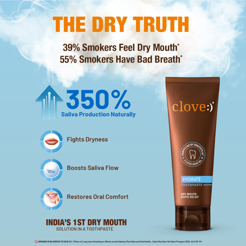 Dry Mouth Fondly: People with diabetes suffer from dry mouth, bad breath, cavities, and gum disease three times more than the average person. Clove Hydrate toothpaste is specifically designed to prevent all of these, thereby improving your overall oral health and Helps To Prevent Dry Mouth Symptoms