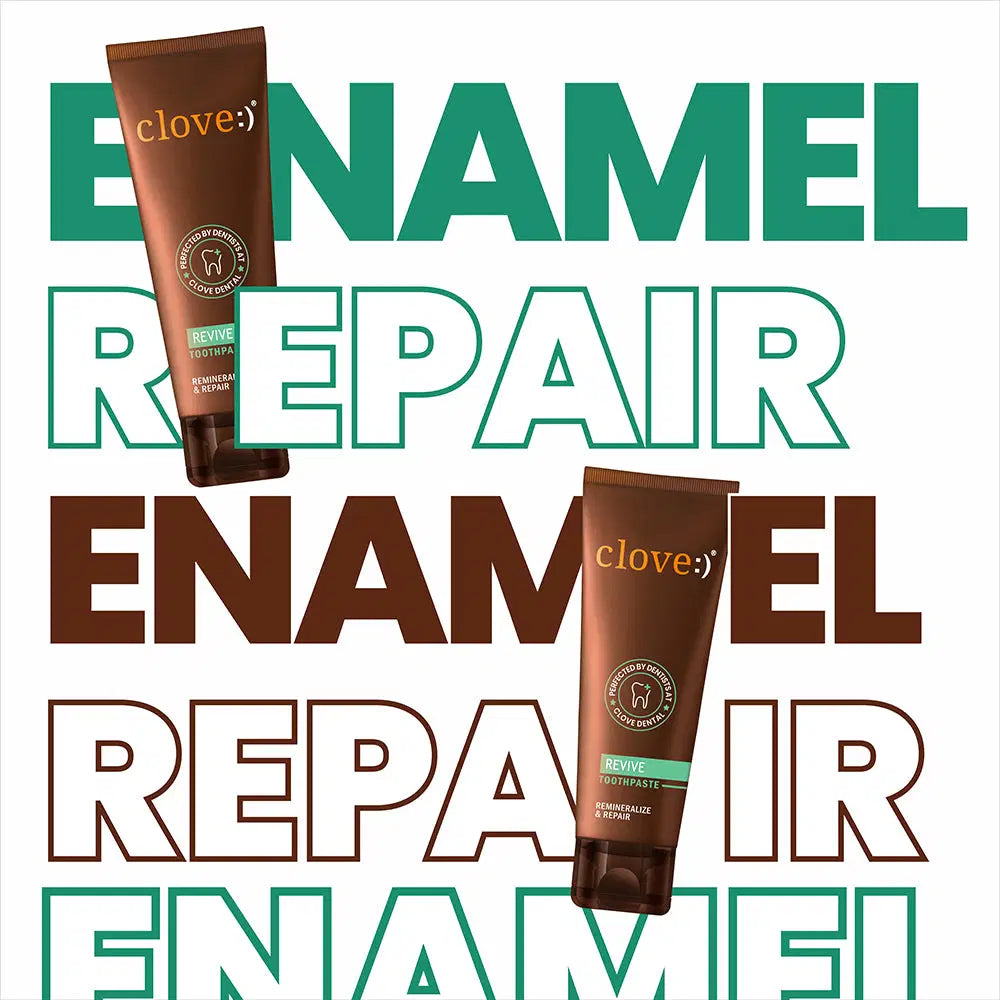 Clove Revive: To Remineralize and repair; a formula that works by replenishing minerals in tooth enamel, rebuild and strengthen/toughen the enamel structure thereby prevents further decay. When the protective layer of teeth (enamel) is worn away or gums recede, the dentine underneath becomes exposed. Clove Revive Toothpaste for Remineralize Teeth Enamel and support the oral health. Clove Revive toothpaste works by replenishing lost minerals in tooth enamel which help rebuild and strengthen/toughen the enamel structure and prevent further decay. Clove Revive is a daily fluoride toothpaste that helps to repair and protect the sensitive areas of teeth, while still providing the benefits of a regular paste like strong teeth and health gums.